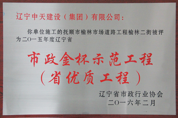 企業先后榮獲“全國優秀施工企業”、 “中國AAA級信用企業”、“全國保障性安居工程建設勞動競賽先進單位”、“遼寧省最受尊敬企業”、“遼寧省優秀建筑業企業”、“遼寧省工程建設質量管理優秀企業”、 “遼寧省守合同、重信用企業”、遼寧省“AAA級信用企業”、 “撫順市安全生產先進單位、紅旗單位”、“撫順市安康杯競賽先進集體”等多項殊榮。